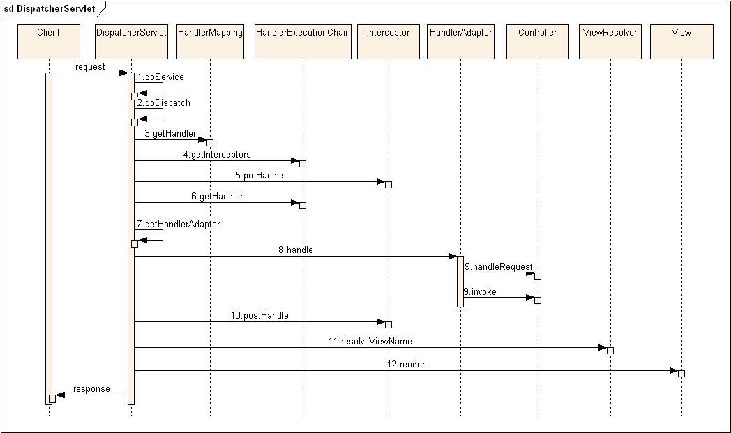 위 DispatcherServlet의 동작을 간단하게 나열한다면 다음과 같다. (예외 사항은 제외)